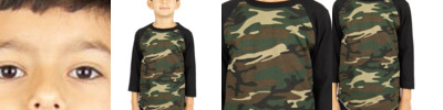 SHRAGCY Youth Three-Quarter Sleeve Camo Raglan T-Shirt