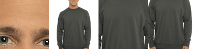5.3-ounce, 60/40 combed ring spun cotton/polyester French terry fleece Tear-away label Halfmoon at back neck Cross-stitch detail at neck Raglan sleeves Side seamed 1x1 rib knit cuffs and hem