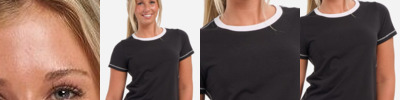6 oz./yd², 50/50 cotton/polyester brushed jersey Slim fit Contrasting rib neck and sleeve bands Forward shoulder seams