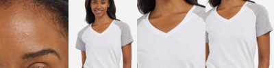 4.5 oz./yd², 100% ring-spun cotton Ribbed V-neck collar Self-fabric back neck tape Heat sealed label