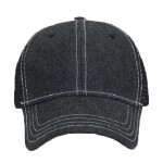 Front: 100% CottonBack: 100% Polyester Mesh Structured Firm Front Panel Low-Fitting 6 panel cap Seamed Front Panel with Full Buckram 6 Sewn Eyelets Pro Stitch on Crown 4 Rows White Stitching on Visor Matching Fabric Undervisor Matching Color Sweatband Matching Fabric Adjustable Strap withBlack Metal Buckle, Insert in Sweatband Size: OSFM - Adult (58cm/22.8")