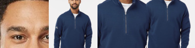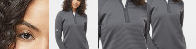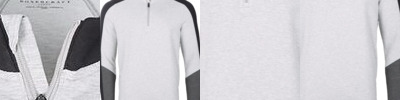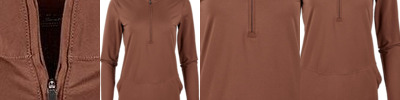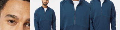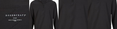 6.5 oz./yd², 95/5 polyester/spandex, stretch woven Regular fit Self-fabric, quarter-zip placket Stand collar Thumbhole on cuffs Pouch pocket Woven loop label