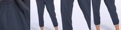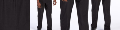 6.5 oz./yd², 90/10 polyester/spandex Straight fit Wide waistband with drawcord Side entry pockets Inner elastic pull at leg opening Ankle length Heat transfer label