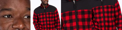 8.4 oz./yd², 100% polyester Everest fleece 100% woven poly front and back yoke Relaxed fit Woven fabric blocked full zip jacket Contrast woven bindings at sleeve cuffs, collar and pocket opening Side entry pockets Stand up collar Two-way zipper center front zipper Woven label
