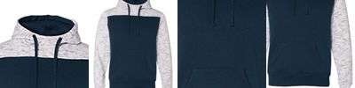 7.25 oz. 60% cotton, 40% polyester melange fleece; Scuba hood; Contrast drawcords; Front pouch pocket; Rib waist & cuffs; Two contrast stripes on each sleeve;