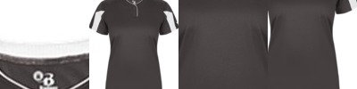4.5 oz./yd², 50/37/13 polyester/cotton/rayon Pre-shrunk Soft, lightweight jersey with moisture management Contrast-color collar and varsity striping on sleeves Seamless 1x1 ribbed collar with double-needle coverstitching on front neck Side seams Shoulder-to-shoulder taping Double-needle stitched sleeves and bottom hem Tear away label
