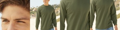 4.5 oz./yd², 65/35 polyester/combed ringspun cotton Topstitched ribbed collar Cotton twill back neck tape Flatlock-stitched side seams Double-needle stitched sleeves and bottom hem EasyTear™ label This product meets the following Sustainable Style subcategory:
