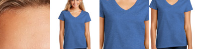 4.3 oz., 100% combed ringspun cotton, 32 singles Heather Grey is 90/10 ringspun cotton/polyester Heather Colors are 65/35 polyester/ringspun cotton Fitted silhouette with display tape 1/2" rib v-neck collar Single needle topstitched front neck Double-needle cap sleeve and bottom hem Side seams Oeko-Tex® Standard 100 Certified TearAway™ label