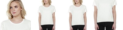 3.5 oz., 100% combed and ring-spun liquid cotton; 40 singles; Optimal stretch and recovery; Fashion fit; Side seams; Subtle eliptical high low hem; Loose fit; Tear-away label; Made in a W.R.A.P. certified factory;