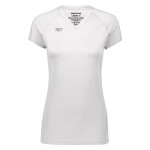 * 84% polyester/16% spandex knit with color secure(r) technology that helps prevent dye migration * 90% polyester/10% spandex wicking mesh underarm and sleeve inserts with color secure(r) technology that helps prevent dye migration * 4-Way stretch properties allow for increased mobility * Wicks moisture * Ladies' fit * Tag-free label * High 5 logo on right chest * V-neck collar * Strategically placed seams for maximum mobility and comfort * Raglan sleeves * Designed to conform to NFHS specifications for a solid jersey