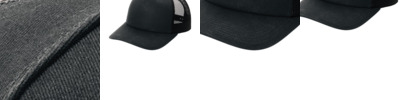 100% cotton twill front panels and bill (Solids), 65/35 polyester/cotton twill (Heather Grey), 100% polyester mesh back panels