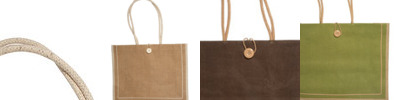 - Reusable tote bag made of Laminated Jute with 10 oz. Cotton Canvas piping.