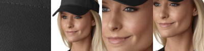 70/30 cotton/nylon Mesh on the two side panels Adams exclusive Cool-Crown™ comfort mesh lining Four panel, low-profile Foam covered visor Large metal eyelets 8 ½” veil with patented zipper pocket UPF 45+ protection