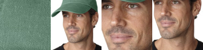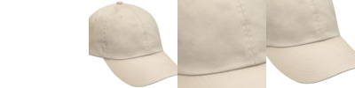 100% cotton twill visor Vat-dyed true color, garment washed Three panel Pre-curved visor Black absorbent terry cloth sweatband Black under visor reduces glare Self-fabric adhesive closure