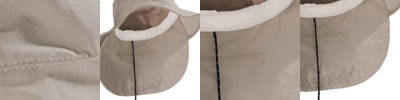 70/30 cotton/nylon Adams exclusive Cool-Crown™ comfort mesh lining CoolPlus® terry cloth sweatband Sewn eyelets Neck cape with patented zipper pocket Shirt collar clip and cord in the rear