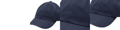 100% cotton Garment washed pigment dyed cap Six panel, low profile Pre-curved bill Sewn eyelets Self fabric sweatband Adjustable leather strap with antique brass buckle and grommet