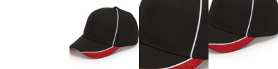 100% polyester Moisture-wicking Breathable, quick-dry Structured, six-panel, mid-profile Jacquard pattern on crown and visor