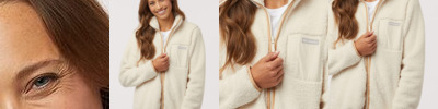 100% polyester sherpa Drawcord adjustable hem Easy reach zipper pull Chest pocket with side hook-and-loop closure Binding at collar and cuffs Hand pockets Columbia logo on chest pocket
