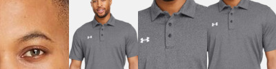 - UA woven label centered on left sleeve hem and UA heat seal center back neck