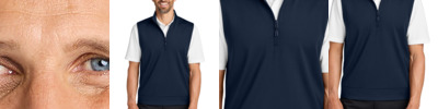 Created with an earth-first attitude, this midweight 1/4-zip vest will stand out in any work or leisure wardrobe. Not only is it easy-to-wear and layerable, but it also boasts superior stretch, snag-resistance, moisture-wicking and UV ray-resistant performance. 7.7-ounce, 89% recycled polyester/11% spandex interlock knit 7.7-ounce, 81% recycled polyester/8% polyester/11% spandex interlock knit (Grey Steel Heather) This product's carbon footprint has been measured and reduced through a combination of preferred materials and investing in carbon offset projects through the ClimeCo Certified Product ™ Program Snag-resistant Moisture-wicking UPF rating of 50+ Self-piped zipper placket Dyed-to-match, recycled, reverse coil zipper with silicone-tipped drawcord pull Self-fabric faced armholes Self-banded hem Tag-free label **